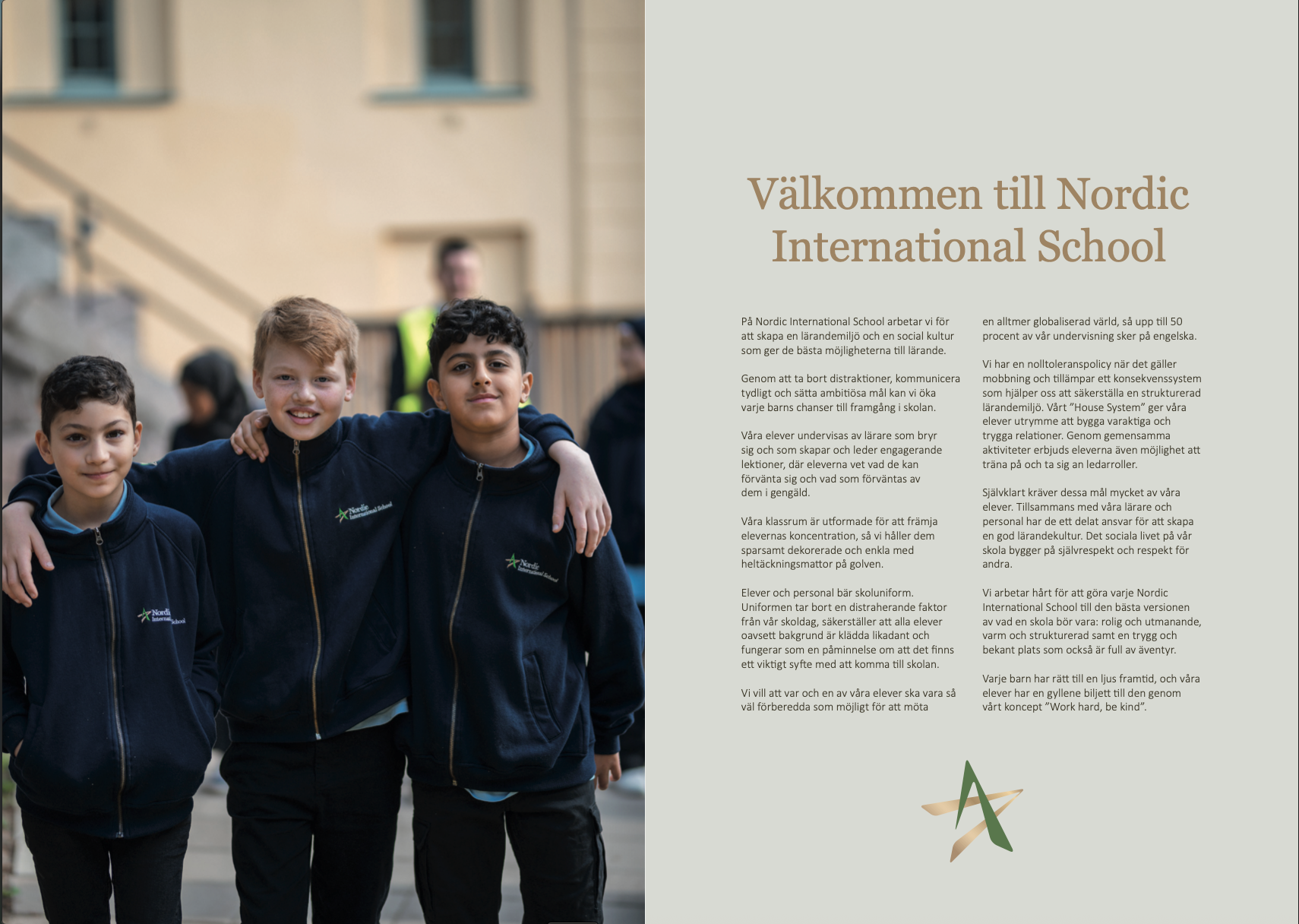 Note: In my role at Brand Manager for Nordic International School and Kronoberg Skola, I was responsible for the creation and distribution of brochures, flyers, posters, post-cards, flags and general merchandise as well as website maintenance, videography and some photography. Please contact me if you are interested in specific examples that are not given here.